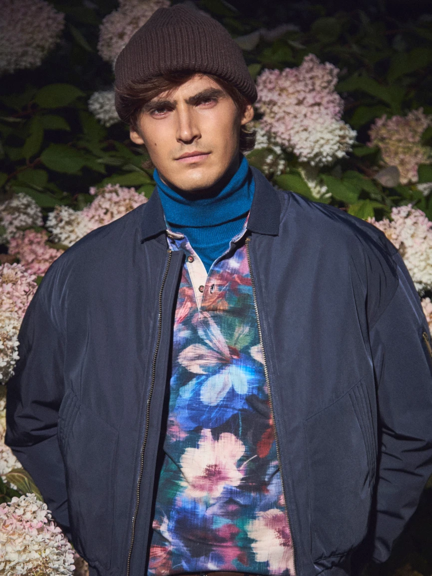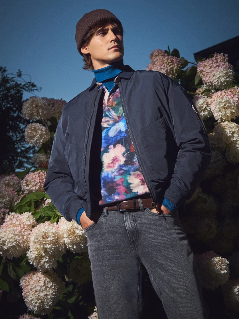 Połączenie koszuli z naszej linii Art Series z prostym, dopasowanym golfem tworzy stylizację pełną kontrastów. Kolorowy, wyrazisty, niosący znaczenie print gra tu pierwsze skrzypce, a jednolity sweter stanowi dla niego spokojne tło. To look, który łączy codzienną wygodę z artystycznym sznytem. Idealny wybór na te dni, w których chcesz podkreślić swój indywidualny styl.