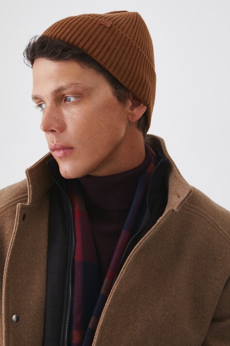 Płaszcz z domieszką wełny  w kratę z kapturem  kolor multicolor