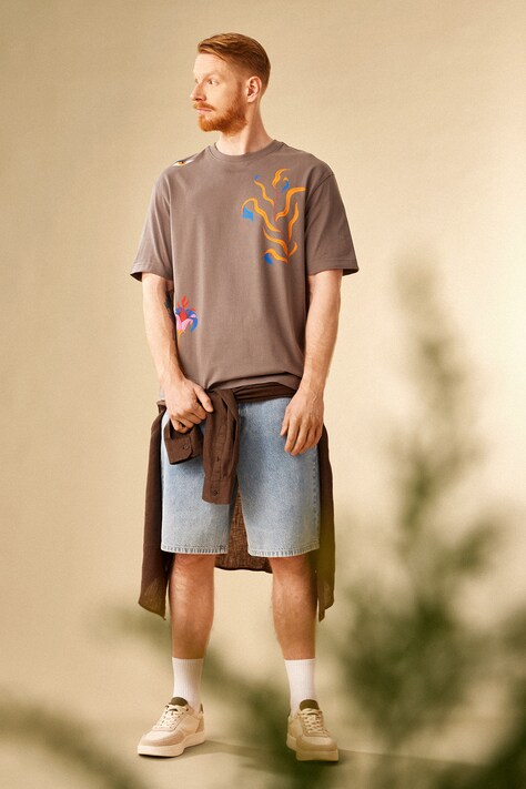 T-shirt bawełniany męski z elastanem wzorzysty kolor multicolor RW25-TSM505