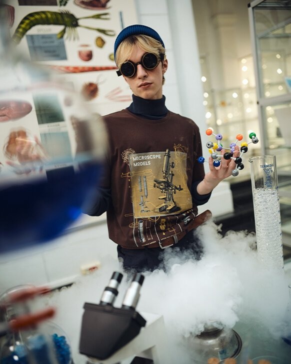 Kolekcja Science to niezapomniane doświadczenie dla entuzjastów nauki i nie tylko, aby poszerzać horyzonty i czerpać inspiracje z otaczającego świata. Zachwyca eksperymentalnymi wzorami i mikrobiologiczną paletą barw. Grafiki wykorzystane na ubraniach edukują i rozwijają wyobraźnię – każdy element kolekcji został oparty na konkretnych zagadnieniach naukowych, procesach mikrobiologicznych oraz wynalazkach – tworząc niezwykłą synergię pomiędzy faktami naukowymi a światem mody. Kolekcja Science to hołd złożony odkrywcom i… ludzkiej ciekawości! Wybierz się w fascynującą podróż do świata mikrobiologii.