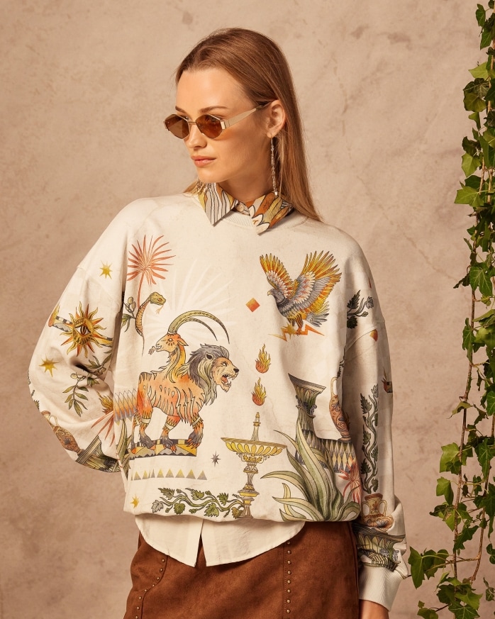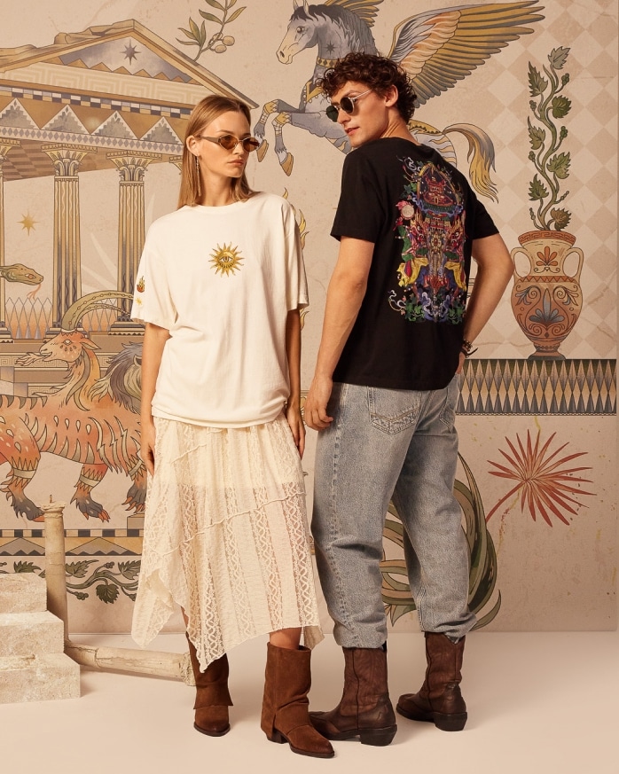 Projekty z kolekcji to coś więcej niż modowy wybór. T-shirty, sukienki, bluzy oraz koszule to elementy garderoby, które mają głos, inspirują i pozwalają utożsamiać się z przedstawionymi historiami. Kolory dominujące w tej kolekcji nawiązują do oceanów, skarbów, zaginionych krain i bujnych lasów. To podróż w czasie, która pozwala poczuć magię i tajemnicę dawnych cywilizacji.