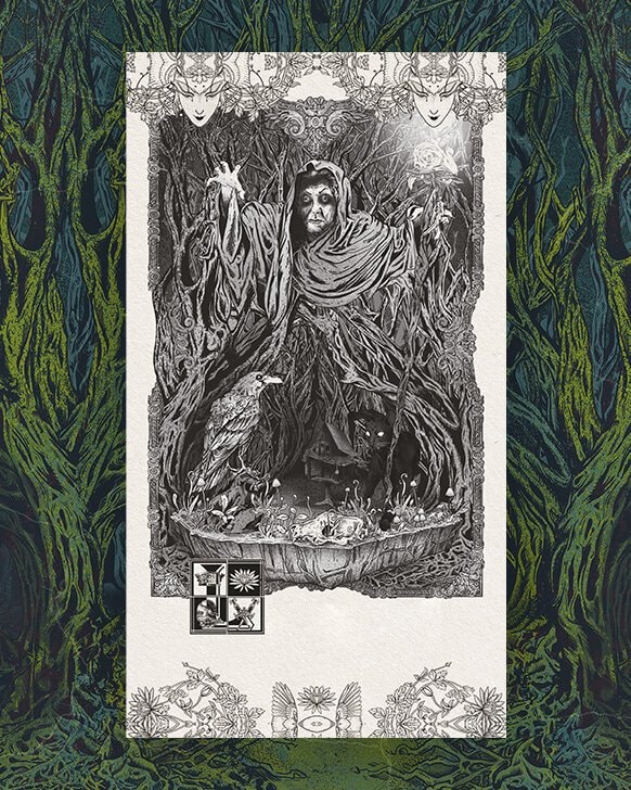 Kiedy człowiek do ładu dojść nie może z prawem natury, a poddać nie chce się jemu, wtedy zaczyna baśnie tkać i zwyczajnym obrządkom świata przypisywać nadprzyrodzonych, złowrogich mocy. Kto bagna trzyma w trwodze, skoro nawet w najsroższą zimę zamarznąć nie chcą? Kto zapala błędne ognie, by myliły zmysły w ciemnym lesie? Gdzie trafiają Ci, którzy z domu wyszli i nigdy nie wrócili? Są też baśnie i historie, które krzywdę miały wyrządzić temu, o kim była mowa. Tak właśnie było z Babą Jagą – kapłanką, kobietą mądrą, oślepłą na wzór Odyna. Ta pradawna władczyni zwierząt leśnych i opiekunka zmarłych, towarzyszka przemiany dzieci w dorosłych, została zohydzona przez zatrwożonych jej mocą i mądrością możnych świeckich i kościelnych, którzy w ryzach chcieli trzymać chłopów i gawiedź. Baba Jaga, zamieszkująca głębokie lasy, krzywdy ludziom nie robiła. Dbała o naturalną rzeczy kolej, przeprowadzała święte obrzędy, znała moc roślin i grzybów, opiekowała się dobrostanem leśnych ostępów, gawędziła z dzikimi zwierzętami. Jej moc odnajdziemy w pracy guślarek, zielarek i wiedźm, czyli Tych, co Wiedzą. Ci, których umysły są zamknięte na pradawne obyczaje i trwożne przed siłą natury, w przerażeniu swoim ukuli mit o obrzydliwej Babie Jadze, która w swojej chacie na kurzej łapie, wśród rozrzuconych kości dzieci, klęła na dobrych ludzi i pomory na wsie zsyłała. Dobrze, że w bajki te dziś coraz mniej ludzi wierzy i kobieca siła, mądrość i odwaga na blask dnia wychodzą i wracają tam, gdzie być powinny.
