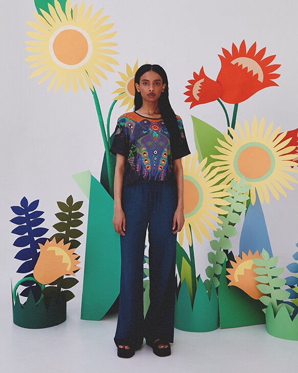 Kolekcję Prymachenko pokazaliśmy w otoczeniu wyjątkowej scenografii nawiązującej do malarskiego świata artystki. Inspiracją do form papierowych kwiatów i roślin ustawionych w przestrzennych kompozycjach stały się ludowe wycinanki – dodaje Karolina Stawska, Art Director Medicine.