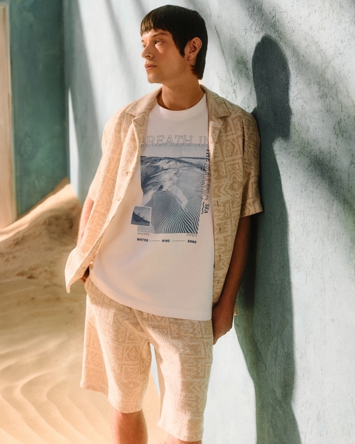 W propozycjach dla niej i dla niego pojawiają się autorskie wzory zaprojektowane przez naszych grafików. Na produktach możesz zobaczyć ruchome wydmy – unikalne zjawisko, które przyciąga turystów z całego świata, a także przymorskie jeziora, lasy, latarnie, torfowiska i dziką faunę. Symbolem kolekcji jest mewa srebrzysta, ale nie zabrakło motywów roślinnych porastających bałtyckie brzegi i subtelnych odniesień do różnorodności krajobrazów przyrody. Całość utrzymana jest w palecie barw inspirowanej dzikością, a zarazem delikatnością natury. Odcienie piasku, chłodnych błękitów, zgaszonej zieleni i przydymionej szarości sprawiają, że każdy element kolekcji to opowieść – o wolności, synergii i żywiołach, które ożywiają to wyjątkowe miejsce.