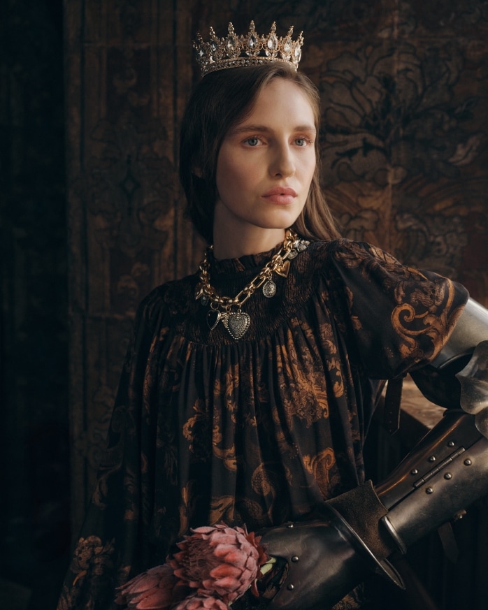 W kolekcji specjalnej znalazły się m.in. T-shirty, bluzy, sukienki, koszule i akcesoria. Printy i detale czerpią bezpośrednio z wawelskich dzieł sztuki. Szczególne miejsce zajmują tu renesansowe arrasy Zygmunta Augusta – jedna z najcenniejszych kolekcji tego typu w Europie i jedyny na świecie – tak liczny – zbiór XVI-wiecznych tkanin stworzonych na zamówienie jednego króla. Kunsztowne wzory zwierząt, roślin i pejzaży, utkane złotą i srebrną nicią, zostały przełożone na współczesne fasony. Tak jak – do dziś – arrasy wypełniają królewskie komnaty intensywnymi barwami i luksusem, tak dziś ich piękno ożywia nasze ubrania. Kolekcja czerpie również z symboliki władzy: koron, insygniów oraz średniowiecznych zbroi, które przez stulecia stanowiły atrybut potęgi monarchów. W nowoczesnych sylwetkach Medicine zostały przełożone na detale, printy i wykończenia, nadając ubraniom nowe znaczenia.
