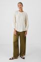 Bluzka lniana damska oversize z fakturą kolor beżowy