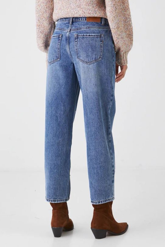 Jeansy bawełniane damskie straight z ozdobną aplikacją kolor niebieski