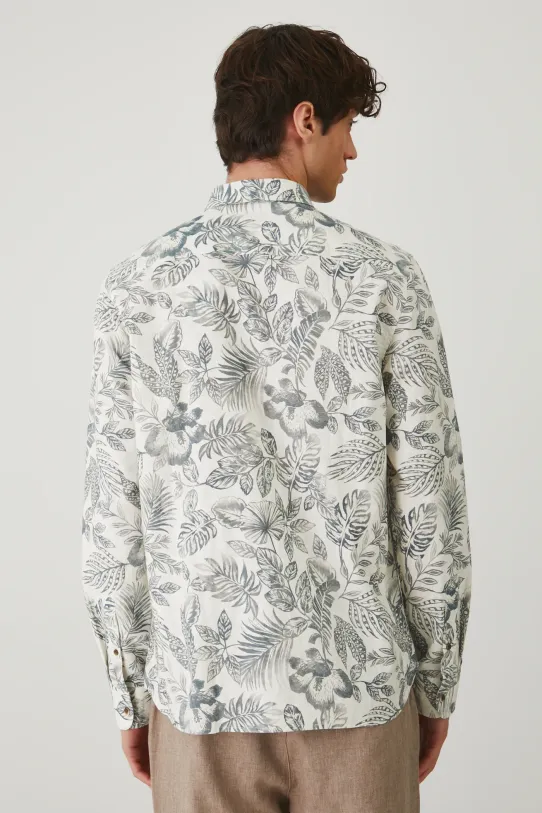Koszula lniana męska z kołnierzykiem klasycznym wzorzysta kolor beżowy