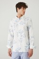 Koszula lniana męska z kołnierzykiem klasycznym wzorzysta kolor niebieski