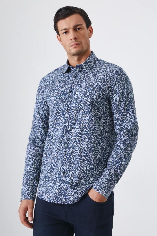 Koszula z kolekcji Medicine. Model wykonany z wzorzystej tkaniny. Posiada klasyczny kołnierzyk.