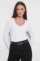 Longsleeve bawełniany damski gładki z domieszką elastanu kolor biały