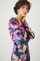 Longsleeve bawełniany damski z elastanem w kwiaty kolor turkusowy