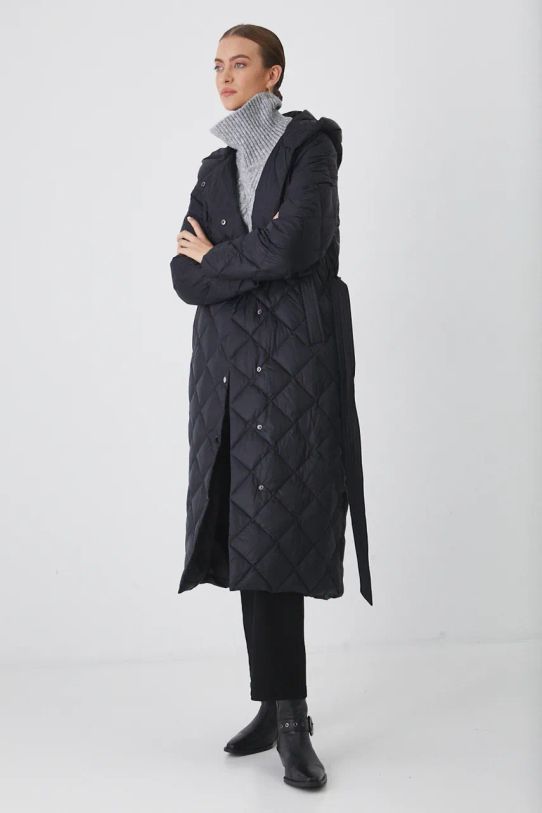 Płaszcz puchowy damski z paskiem pikowany kolor czarny