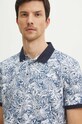 Polo bawełniane męskie z domieszką elastanu wzorzyste kolor niebieski