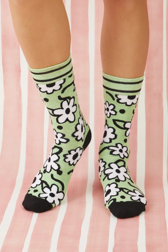 Skarpetki (2-pack) bawełniane damskie w kwiaty kolor multicolor