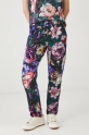 Spodnie dresowe bawełniane damskie z elastanem w kwiaty kolor zielony