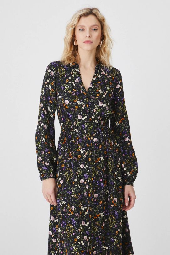 Sukienka damska midi z wiskozy w kwiaty kolor czarny