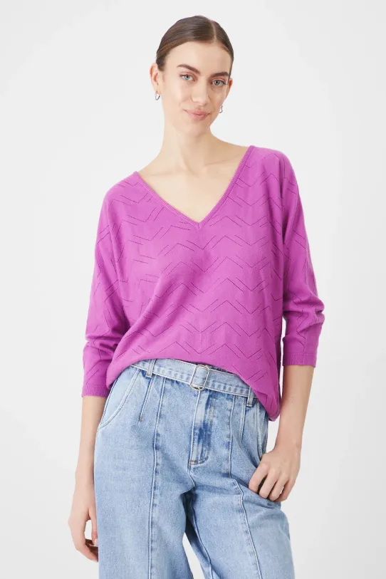 Sweter damski ażurowy z wiskozą kolor fioletowy