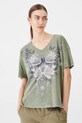 T-shirt bawełniany damski z nadrukiem i aplikacją kolor zielony
