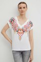 T-shirt bawełniany damski z nadrukiem kolor kremowy