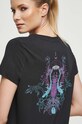 T-shirt bawełniany damski z nadrukiem z domieszką elastanu kolor czarny