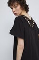 T-shirt bawełniany damskie z ozdobną aplikacją kolor czarny