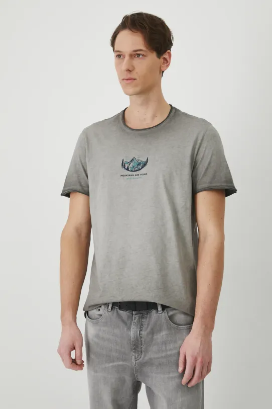 T-shirt bawełniany męski z nadrukiem kolor szary